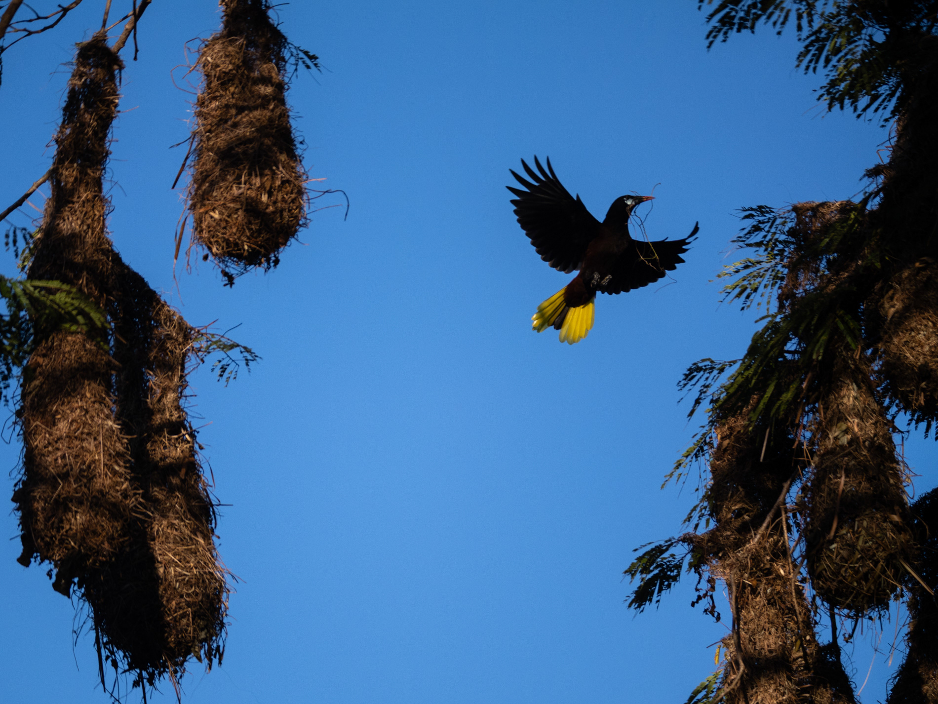Montezuma Oropendola heads to nest