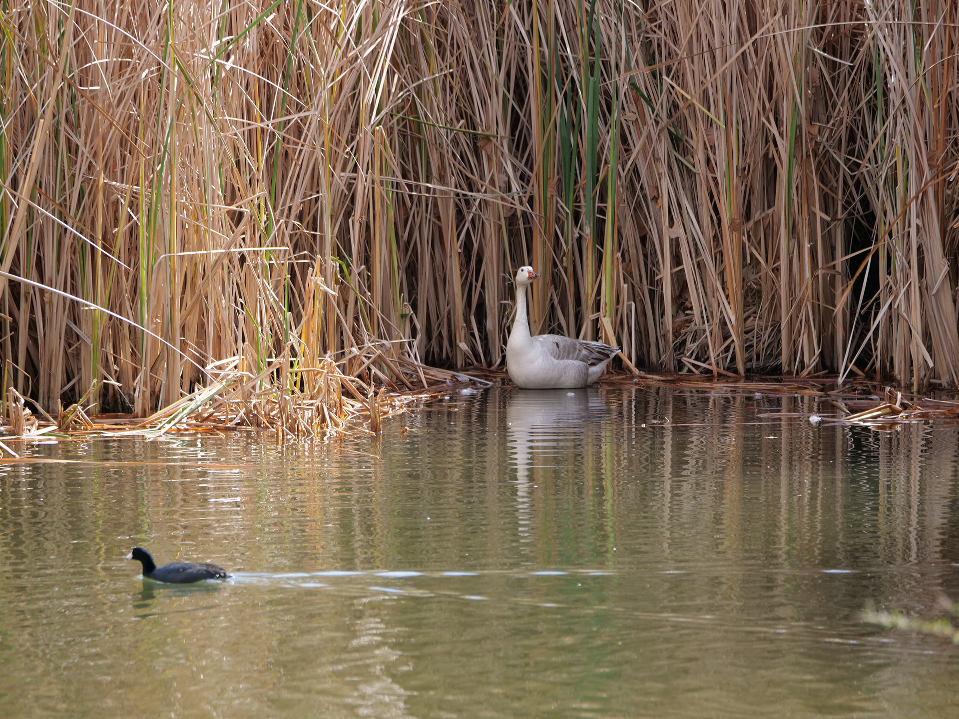 Goose Watching Duck Motor By, Floyd Lamb Park, Las Vegas, NV